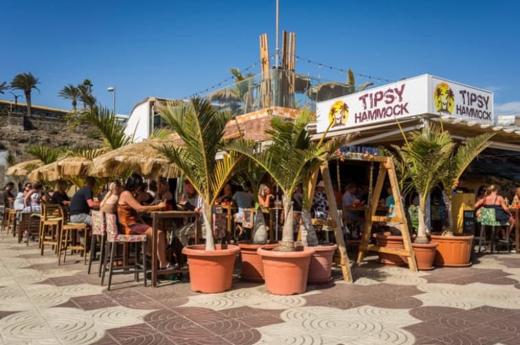 Tipsy Hammock, just meters from the Maspalomas Dunes in south Gran Canaria, is a tropical party by the sea. Cocktails crafted with fresh ingredients, generous homemade food for all tastes, music all day, live DJs at night, saxophonists at sunset. Terrace overlooking the ocean, vibrant international atmosphere. Perfect for a relaxed day and a wild night. Here mojitos taste like paradise and every drink comes with good vibes in Maspalomas.